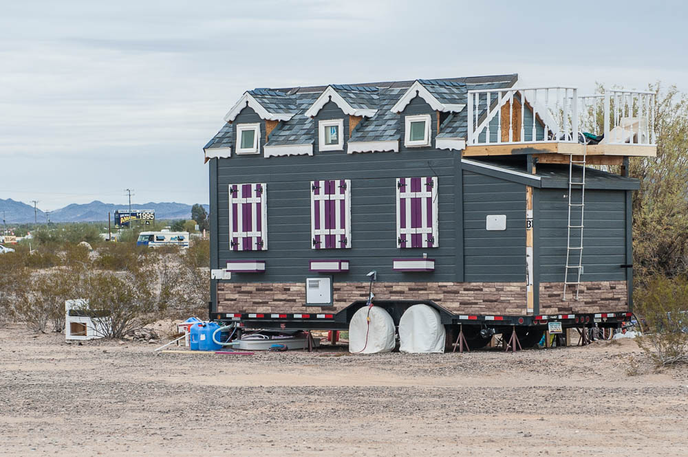 Anyhow, it was time to dump. I packed up the trailer, including pulling the entrance rug & hummingbird feeder, table, grill, solar panel, etc. I would have left most of the outside stuff if I was coming back to the same location, but I decided I would either move to a new location at Quartzsite, or head for Imperial Dam in California, another LTVA BLM location. Strangely enough, the trailer next to me at the dump station was an Oliver, another brand of fiberglass trailer. We chatted to pass the time while the tanks drained, then I headed back out of La Posa South. At the entrance I flipped a mental coin & turned left, heading to Imperial Dam.